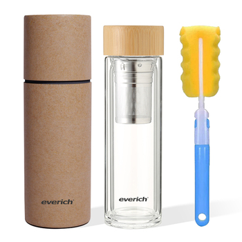 Garrafa de água ecológica sem bpa de 400ml/500ml, garrafa de vidro de infusor de chá borosilicato, dupla caminhada